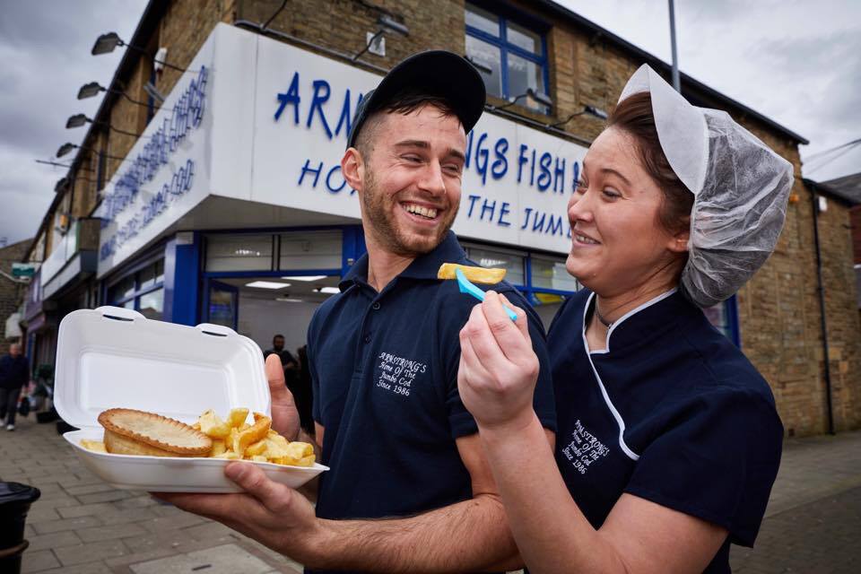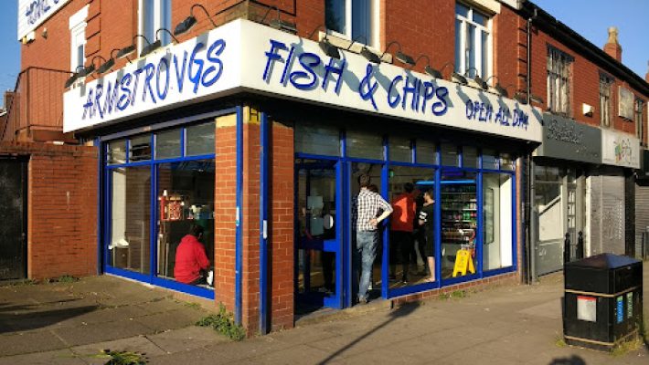 Armstrongs – Home of the Jumbo Cod, specialises in traditional British fish and chips.